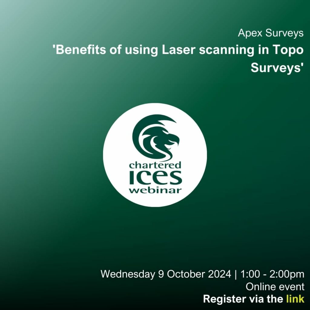 Don’t miss it! Join Apex Surveys webinar ‘Benefits of using Laser scanning in Topo Surveys’ on the 9th October @ 1pm. …